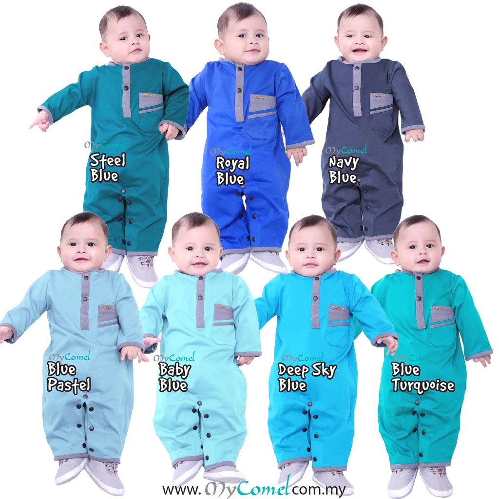 Shop Malaysia Baju Melayu Rompers Adneen 2020 Blue Colour Ready Stock Shopee Singapore